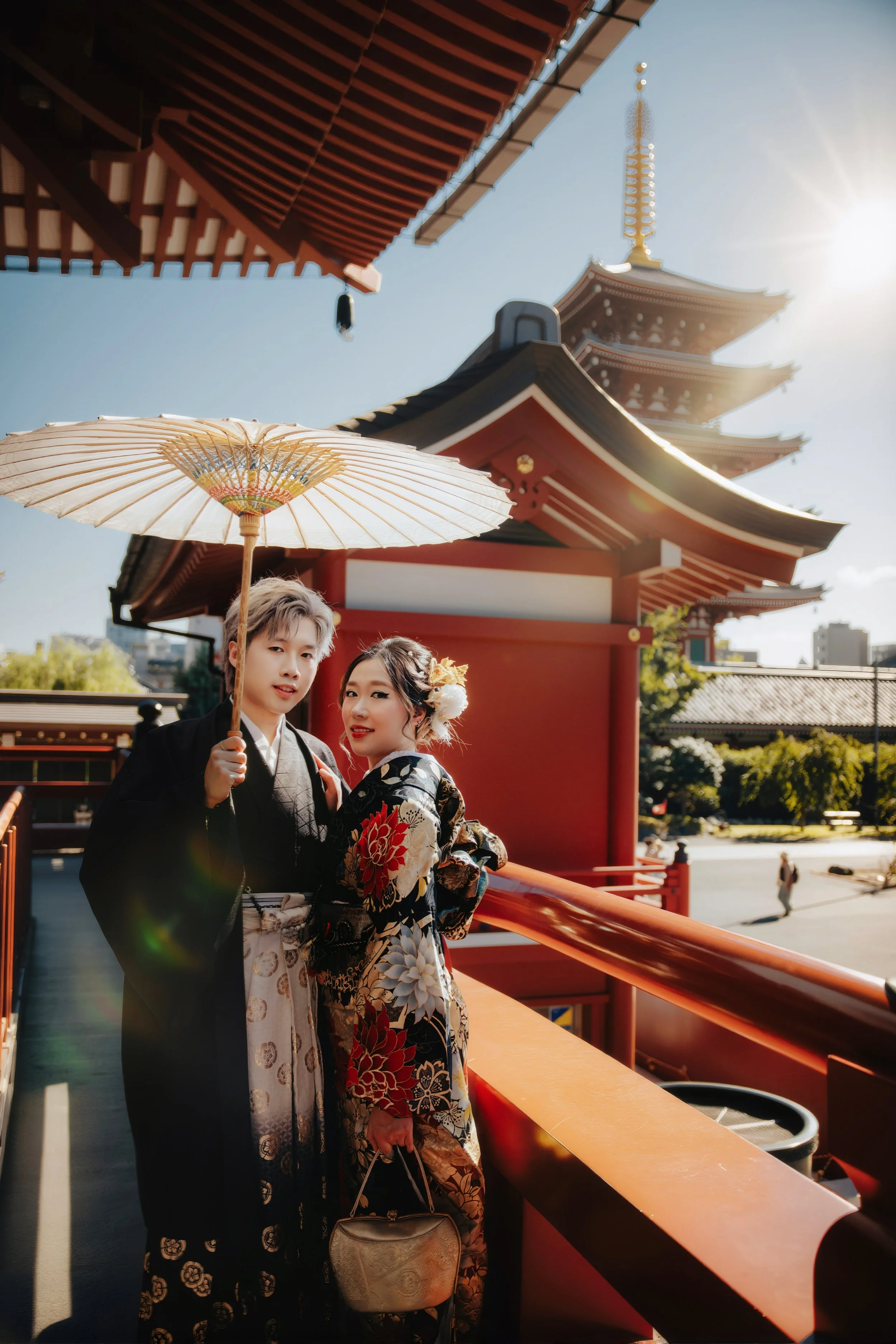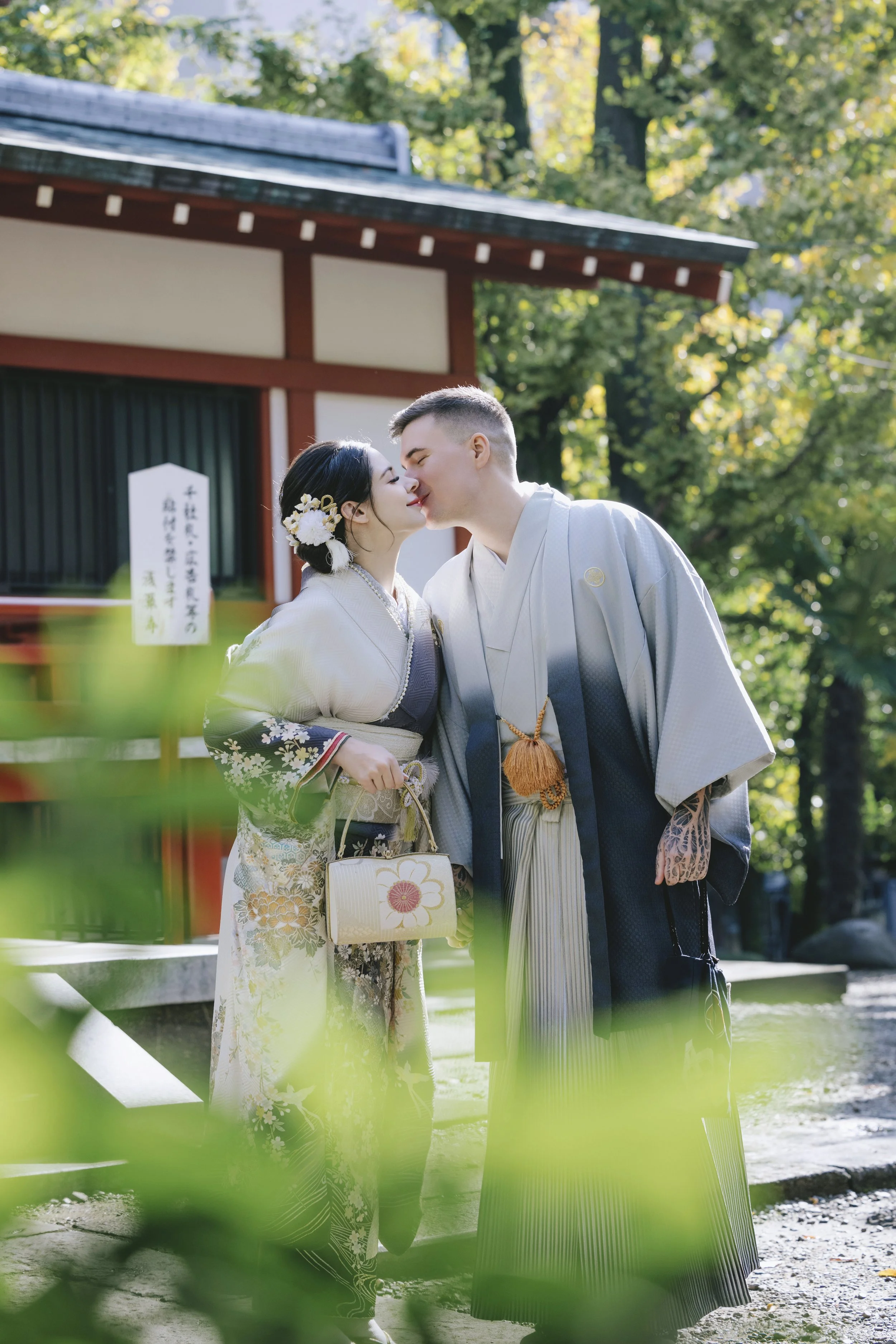 • Accessory Color Coordination – the woman’s bag or hairpiece complements the color of the man’s kimono or hakama