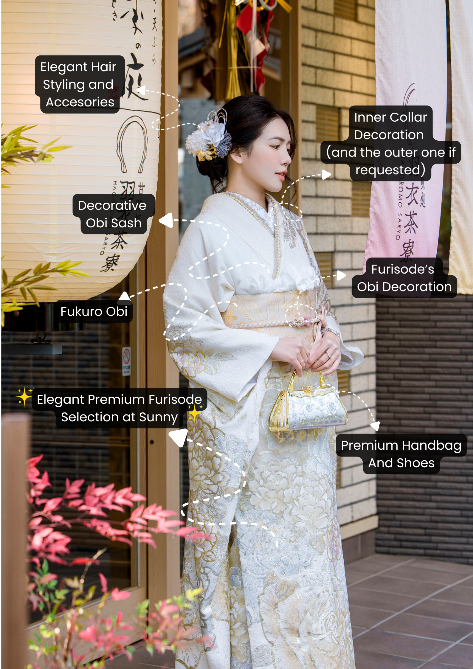 At Sunny, we offer simple and transparent pricing with all-inclusive packages. While many other kimono rental shops charge extra for accessories and hairstyles, Sunny provides everything you need at one price.